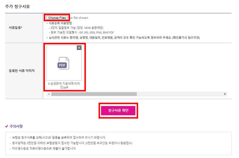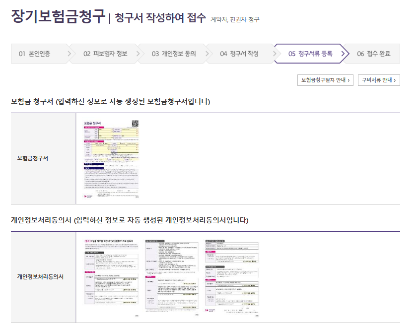 보험금청구서와 개인정보처리동의서는 자동으로 입력되어 있으니 따로 작성할 필요 없고요