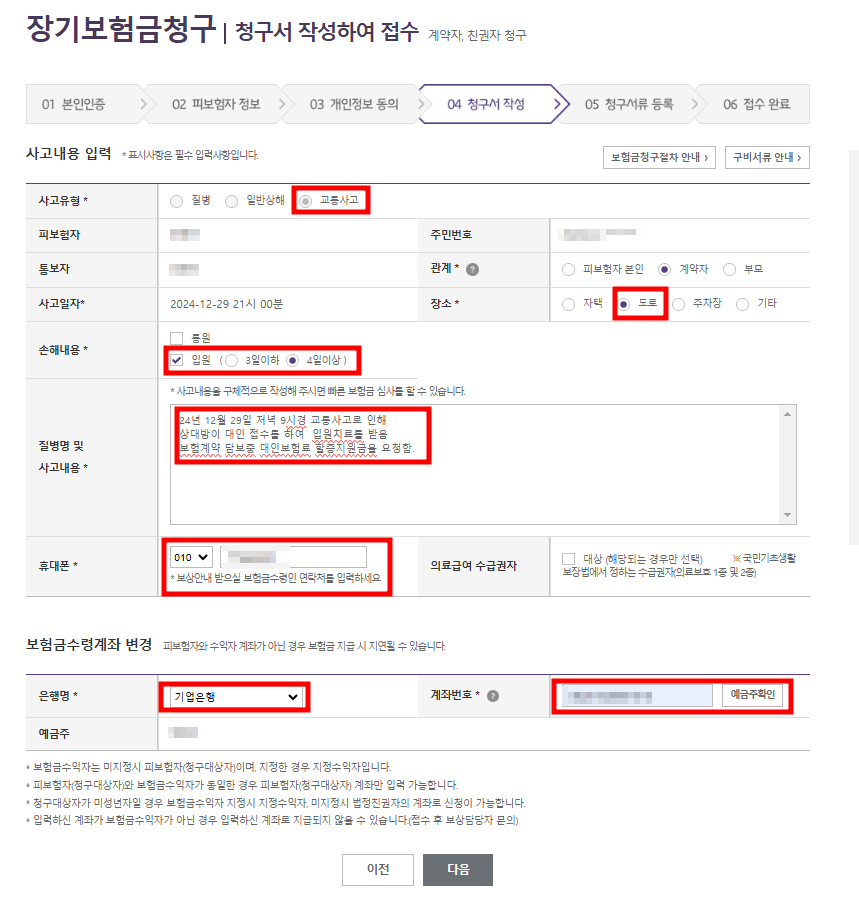25년 1월 30일 설연휴 마지막날 보험금 접수하고