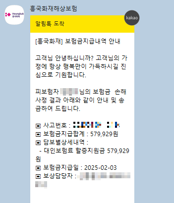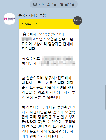 2/3 오전 9시에 보험금 접수 카톡을 받고