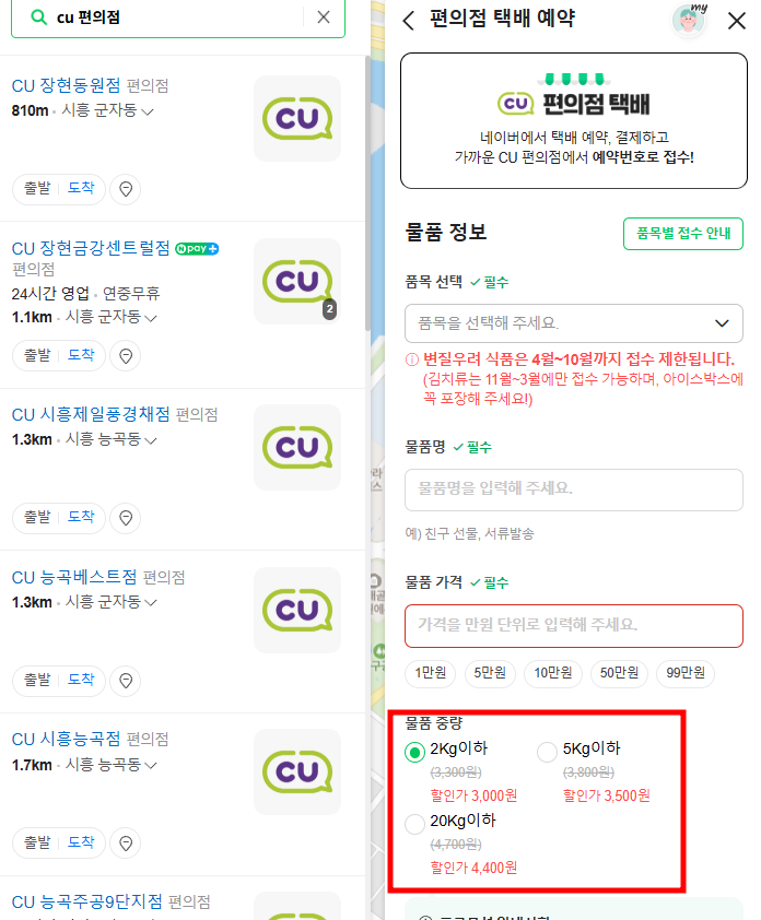 (예약 없이도 편의점에 가서 택배 예약도 가능하지만