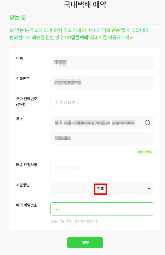 예약해 놓고 편의점으로 가면 훨씬 간편하다)